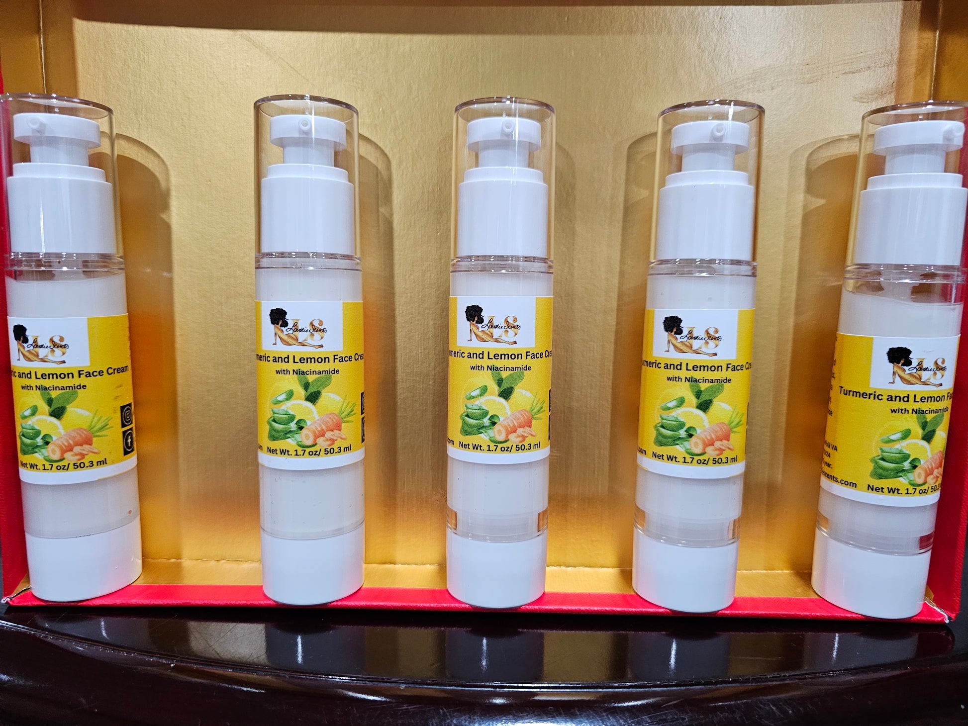 Experience brighter, smoother, and more even skin with our Turmeric and Lemon Face Cream. Enriched with lemon extract, niacinamide, carrot extract, and tea tree oil, this cream provides natural antioxidants and vitamins for a clear and youthful complexion. Say hello to radiant skin with this expertly formulated cream.